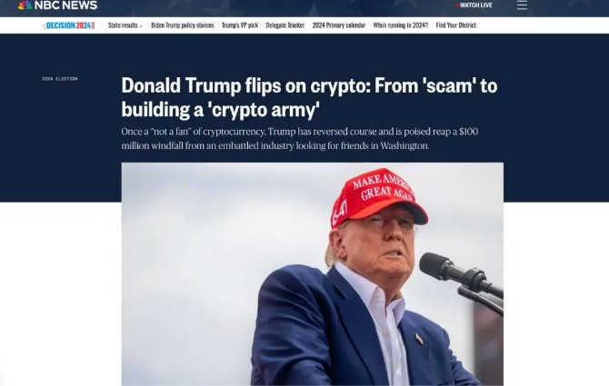 特朗普在本次大选的策略是拥抱加密选民,他在今年五月份自由党全国大会上发表演讲称,将确保加密货币与比特的未来发生在美国,而不是在海外发展。