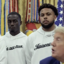 太棒了,愿你们好运,”特朗普一边说一边握住他们的手。“我希望你们会成为场上的最佳两名球员。”