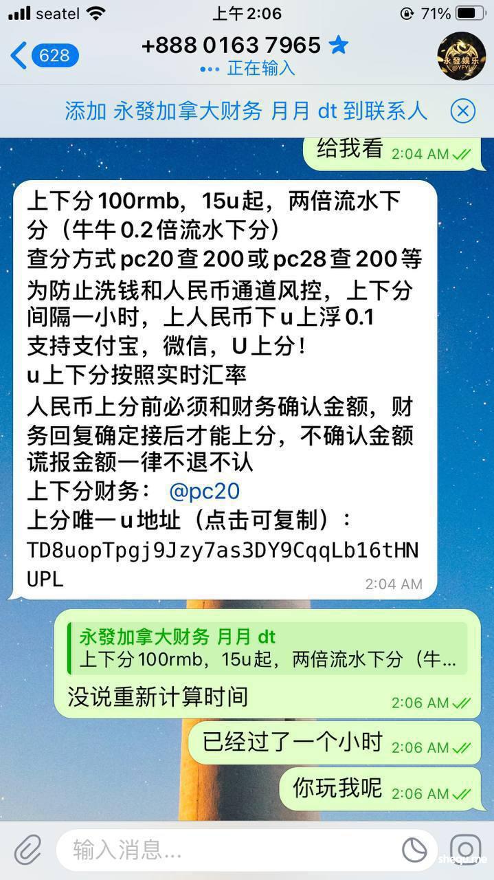 黑平台不给下分,上了一千人民币,赢了钱处处刁难针对,先是一个小时两小时然后24个小时 凭什么你们说什么就是什么,规则也没有搞清楚,这个平台垃圾平台,永发集团老板也是杂种,信息当没看见拉黑,平台的担保也是跟他们穿一条裤子