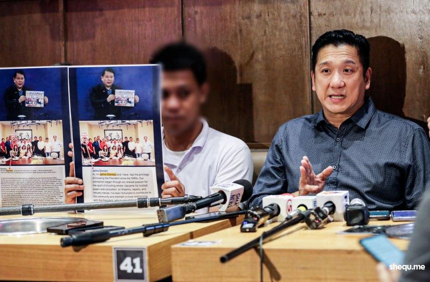 在8月26日举行的Pandesal论坛上,Topacio展示了一张总统夫妇与一些菲律宾博彩业巨头的合影,其中包括Topacio的客户Ong,其目前被众议院拘留。