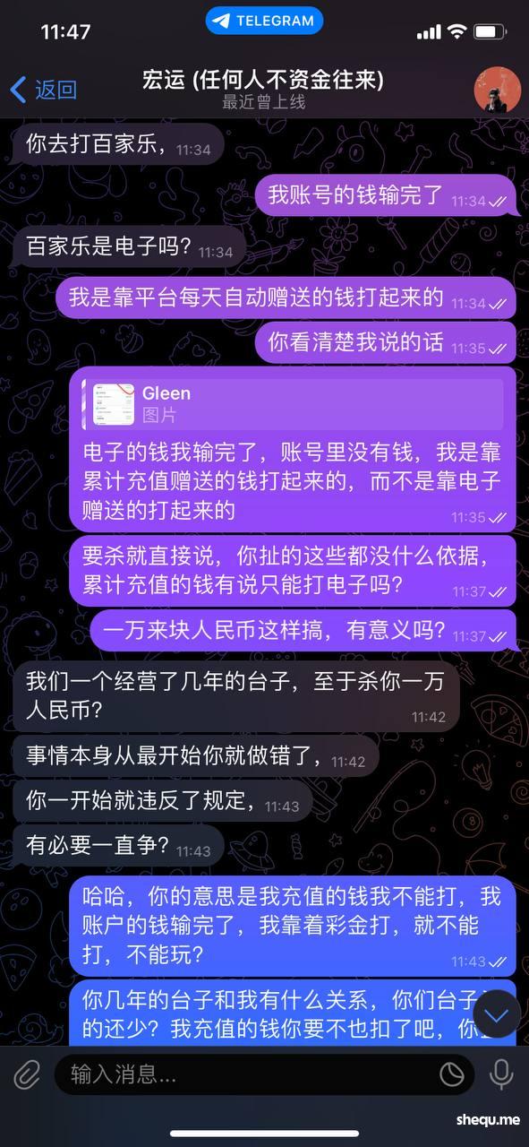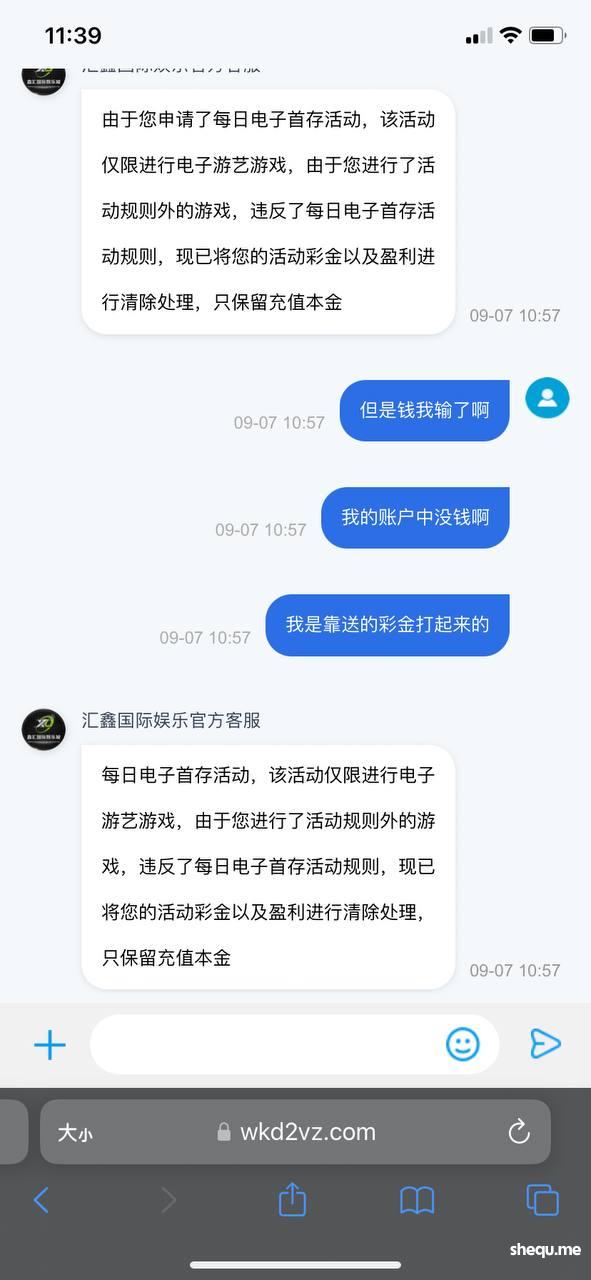 说凌晨我上的分赠送的彩金没有打10倍流水,但是平台上已经说的很清楚了,账户中资金低于0.4需要打流水的话就清零,无需打流水。但是下分用这个理由卡我,说我违规操作,那按你这个傻逼客服的道理来说,平台送我的钱我输了,我再充值上分打赢了也不能提款?因为电子流水不足?随意操作控制单个账号输赢,随意风控账号不能进入游戏,找飞机客服虽然最后把钱给我下了,但还一直嘴硬说是我违规操作