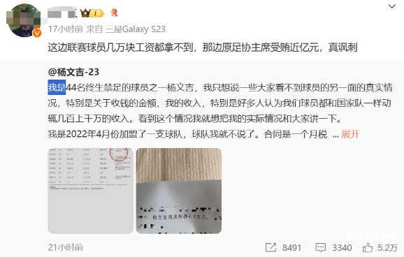 同样被终身禁足的原江西北大门(江西庐山)球员,现效力于无锡吴钩的杨文吉在他社媒的致歉声明文章中,详细描述自己遭遇欠薪以及俱乐部如何通过准入的经过。